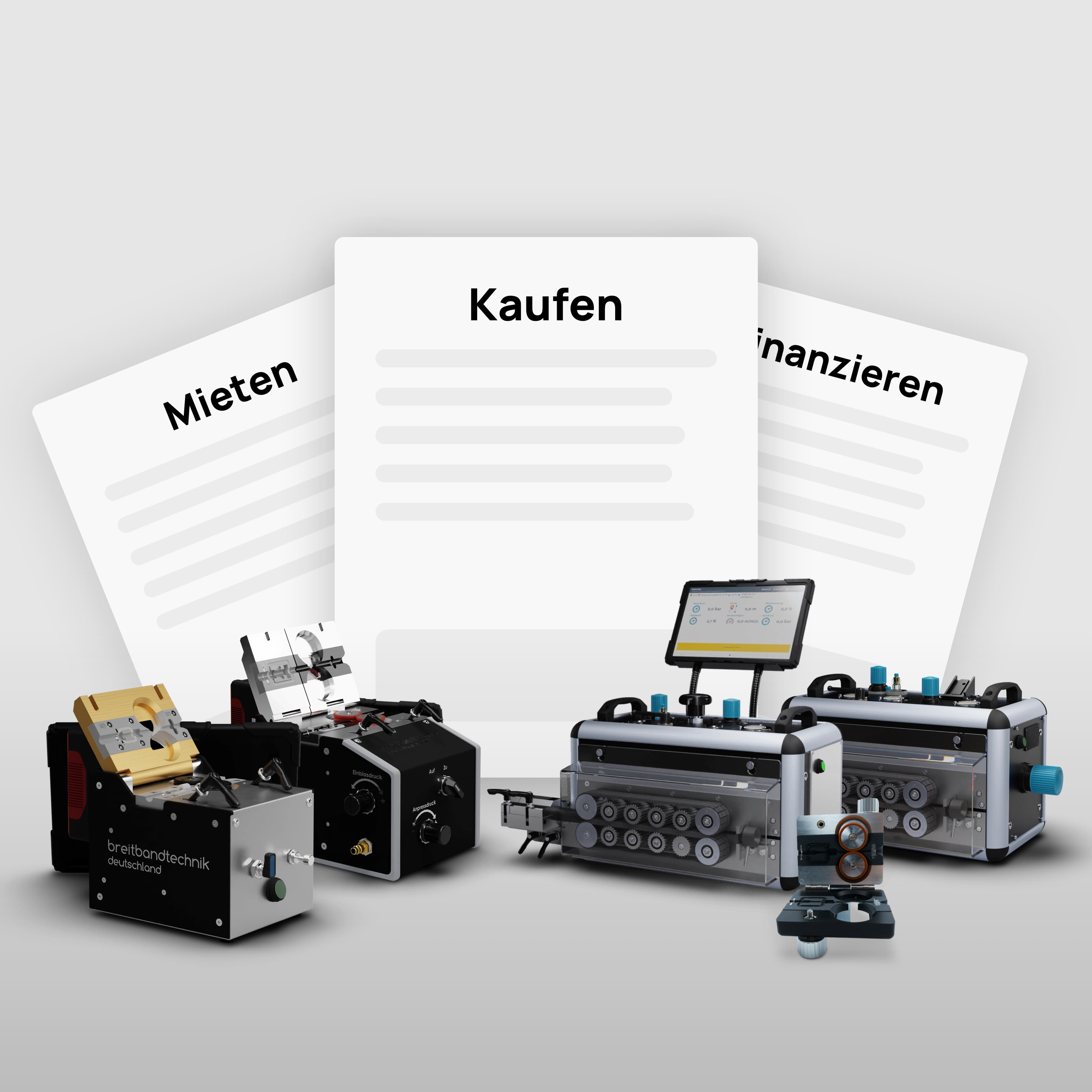 Einblasgeräte Glasfaser sind eine große Investition – dies muss aber nicht so sein: Breitbandtechnik Deutschland bietet Ihnen neben Kaufoptionen auch flexible Mietmöglichkeiten. Sie können das Einblasgerät Ihrer Wahl für genau den Zeitraum mieten, den Sie benötigten. So entstehen keine unnötigen Kosten und Sie halten den Investitionsaufwand gering. Natürlich helfen wir Ihnen bei der Auswahl des passenden Geräts und stehen Ihnen bei allen Fragen zur Seite.