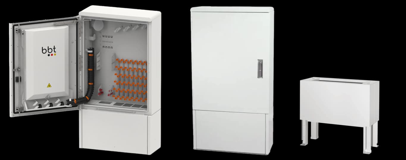 Großer Glasfaser-Netzverteiler für eine sichere, übersichtliche Faserverteilung im FTTH-Ausbau.
