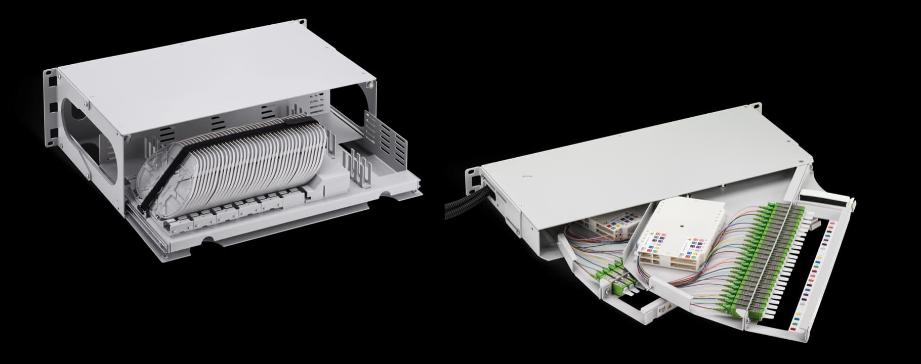 Behalten Sie den Überblick über Ihre Glasfaserverbindungen mit unseren Spleiß- und Patchpanels – spleißfertig vorbereitet, langlebig aus pulverbeschichtem Material, zuverlässig.